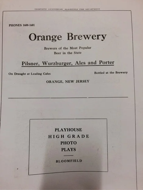 There have been a few successful breweries in Orange, NJ dating back into the early 1900’s. In fact, someone brought in some historic Bloomfield Fire Dept memorabilia and “Orange Brewery” is one of the sponsors. They specialize in Pilsners, Porters, Ales, and Wurzburgers. The brewery was built in 1901 for $350,000 and production ceased in 1920 during Prohibition. After prohibition, it was reopened under the name Trommers until 1950 when it was sold to Liebmann Brewers which bottled Rheingold. It was closed in 1977.