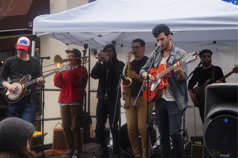 Brother Valiant – The band hit the Montclair Center Stage in the latter part of the day, and it was well worth it. This band was wildly popular and folks lined up to listen to them. According to their site, they formed in the spring of 2013. Brother Valiant began as a couple of friends writing folk songs in a basement in Northern New Jersey, which soon grew into an eclectic 7-piece ensemble. Members consist of AJ Amsterdam - Lead Vocals, Rhythm Guitar, Curran Banach - Banjo, Backing Vocals, Declan O'Connell - Bass, Backing Vocals, Gabriel Marr - Drums & Percussion, Joonas Juhani Lemetyinen – Trombone, Nico Galván - Tenor Saxophone, Joe Gullace on trumpet. Brother Valiant, as they say, blends nuances of folk, rock, punk and jazz and rolls it all up into a peculiar patchwork of genre-bending sounds. As the horns bounce, jump, and dance while playing, the drummer and the bass keep everything in tune and in place. The strings match everyone and the vocals were tight, real, and convey a strong message with each song.